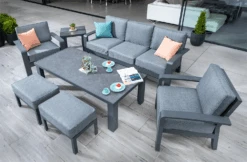 Hartman Apollo Square Corner Sofa Set With Lounge Chairs And Fire Pit Table In Carbon/Pewter