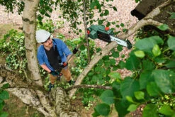 Bosch’s Universal Pole Pruner allows the user the ability to prune at heights of around 2.5 meters with both feet firmly on the floor. Removing the need for ladders, the Universal Pole Pruner used a telescopic pole design to safely and efficiently prune trees. It runs on an 18v Power4All battery