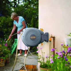 A compact, complete and ready to use version of the Genius cart to bring its practicality and reliability even to small gardens. The winding knob makes winding the hose particularly convenient, while the adjustable handles adapt to users of all heights and makes it easier to put the hose reel away after use. Complete with 30 metres of high quality Silver Elegant Plus hose ½ (12-17 mm), tap connector, spray nozzle with adjustable jet from open to closed, 4 automatic connectors, one with Aquastop, which allows you to connect and disconnect the nozzle from the hose without having to turn on or shut off the tap.