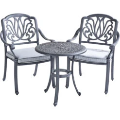 The set is presented in a carbon and pewter colourway, with a ceramic glass table top that has been tempered for safety, and is scratch resistant for durability. The table is versatile – it can be heightened or lowered depending on your needs, for casual dining or more formal dinners.