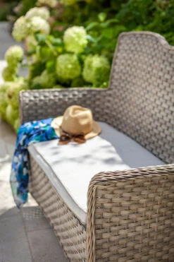 The Hartman Heritage 2 Seat Bench is simple yet effective with its gorgeously crafted ribbon weave and beech / dove colouring. It is perfect for creating a comfortable place to sit and chat with a friend or loved one.