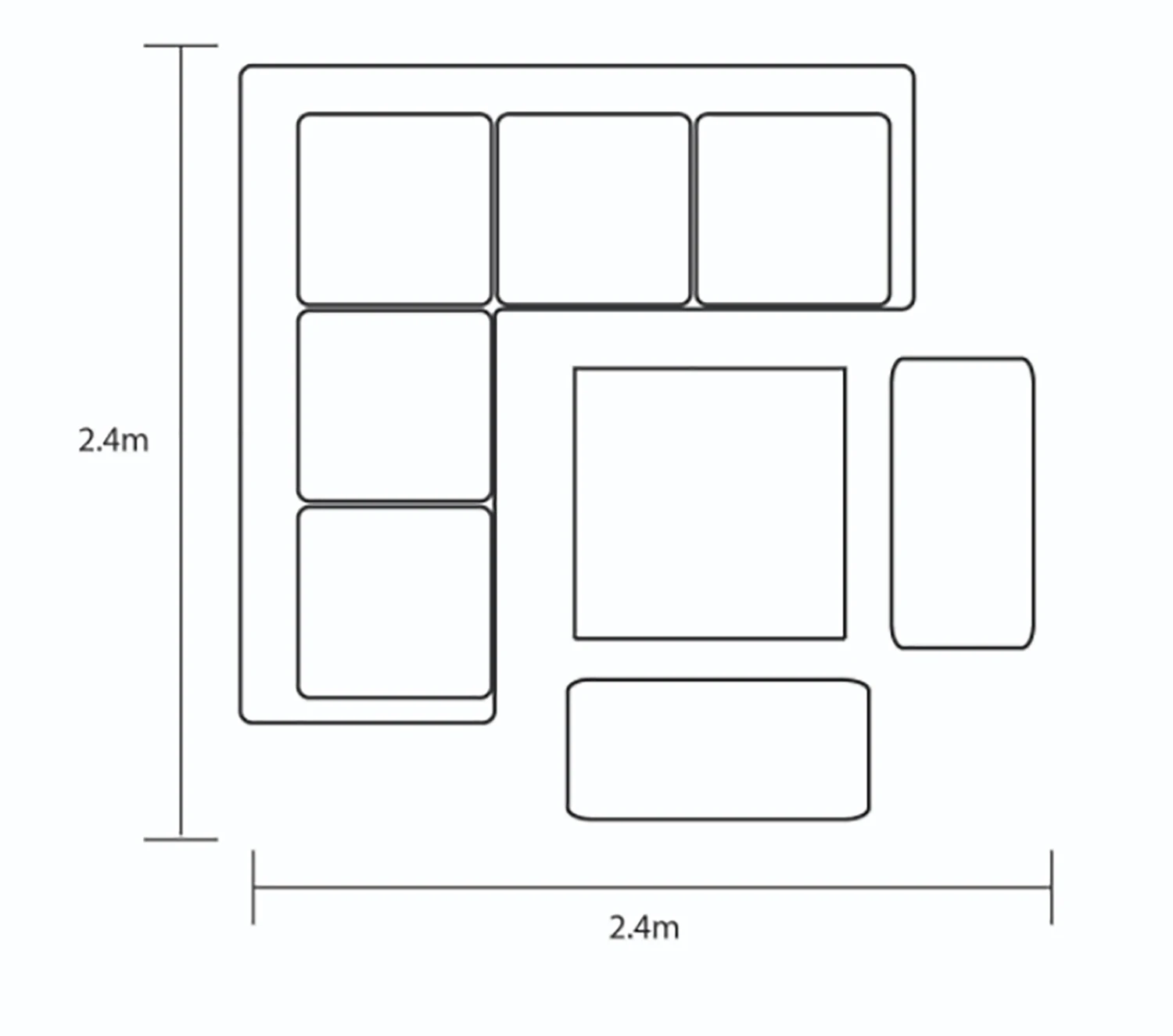 Seating – Height: 92 x Width 234 x Depth 234cm