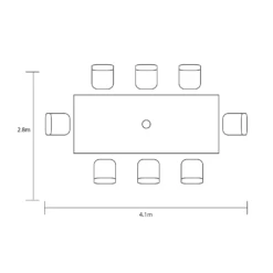 The chairs sit round a rectangular table which has a stunning Tuscan Ceramic Top, making an elegant place to put food and drinks. The top benefits from being both heat and scratch resistant.