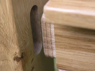 Once assembled the bench is extremely sturdy due to the mortice and tenon joint design. The screw heads on the arms can be hidden with the supplied wooden plugs once assembled.
