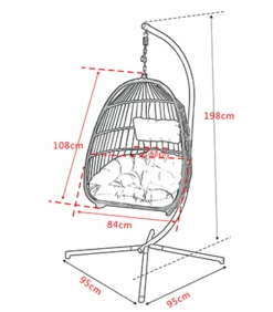 The supporting frame is made from sturdy steel, providing a strong base for aluminium framed egg chair to hand from. The egg chair is finished with double half round rattan and terylene rope for a simple yet effect contemporary style.
