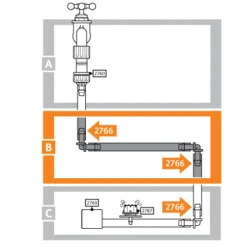 The elbow connector is used for making 90º turns in the 13mm supply tube, enabling the pipe to navigate corners without having to kink the tube itself.