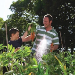 Multi-purpose Hose Gun with a choice of jet, cone, fast-fill, fan, mist, and metal rose spray patterns.