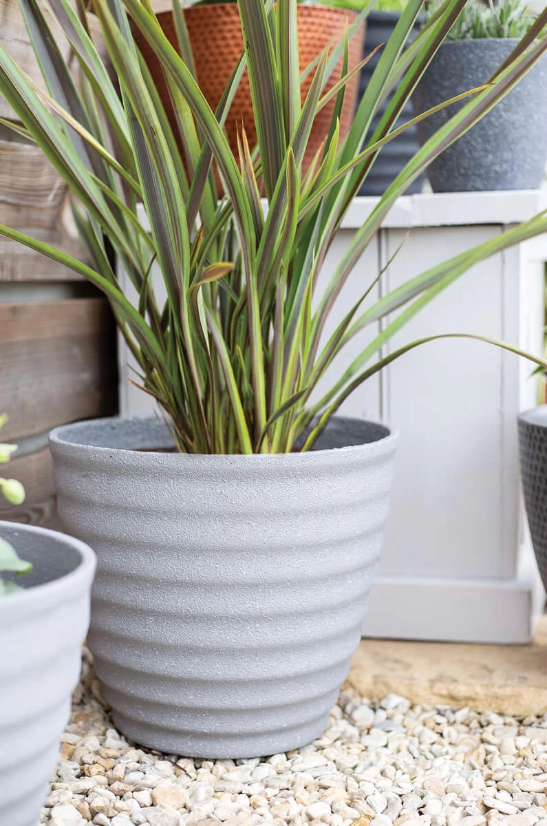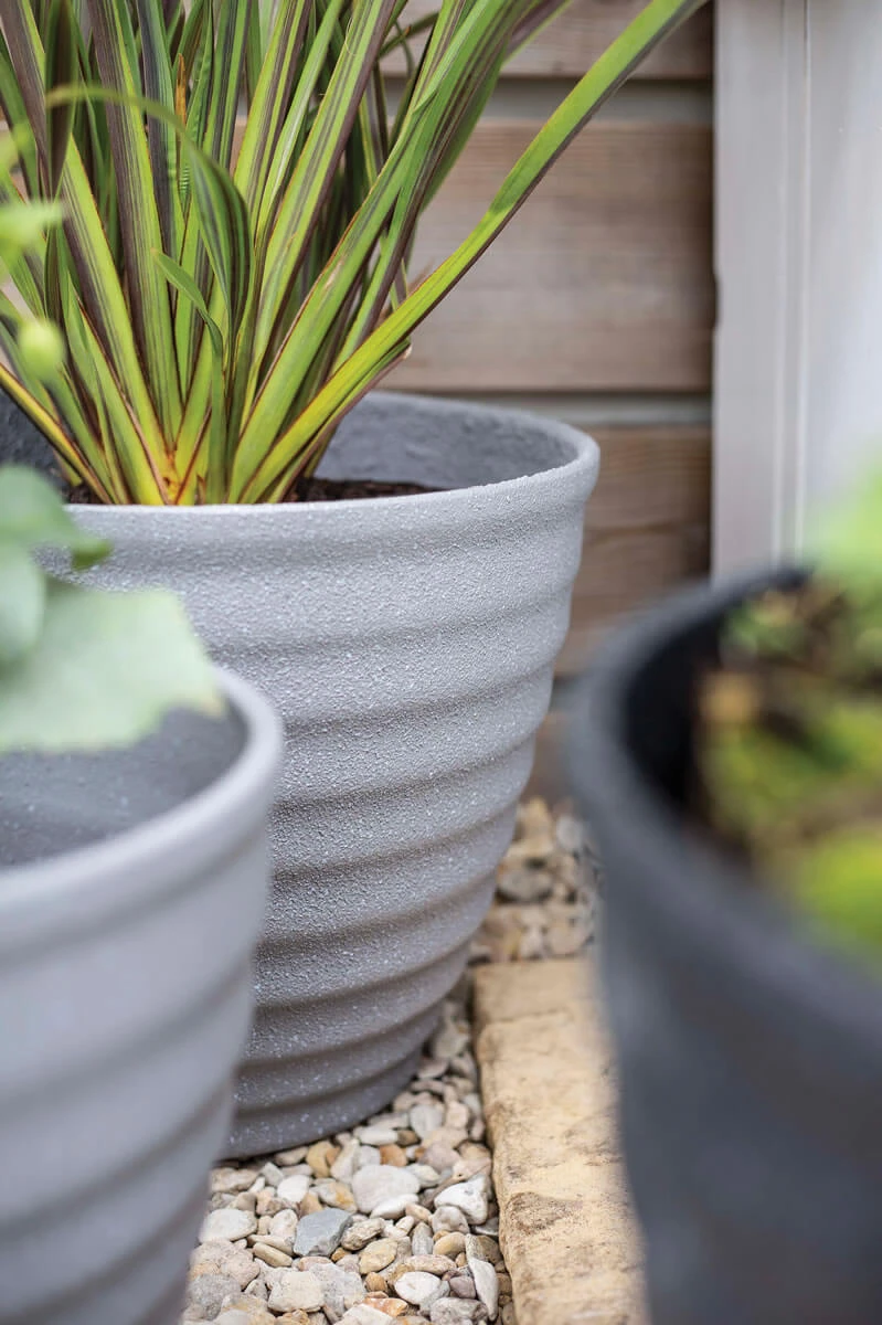 The Hudson Pot has the benefits of plastic, with the good looks of a textured stone pot. It is presented in a grey stone colouring and has a large ribbed design. Its sleek and minimalist appearance would appeal to the style conscious consumer.