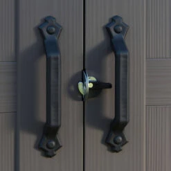 - Elegant wood effect exterior with double doors, plus ventilation grills for air circulation