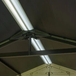 The factor 8 x 8 also has a heavy-duty floor panel which provides added support and ensures that you can store the even heavier items such as a lawnmower or ATV with ease. The high ceiling lets you move around freely and the lockable feature allows you to add security for peace of mind.