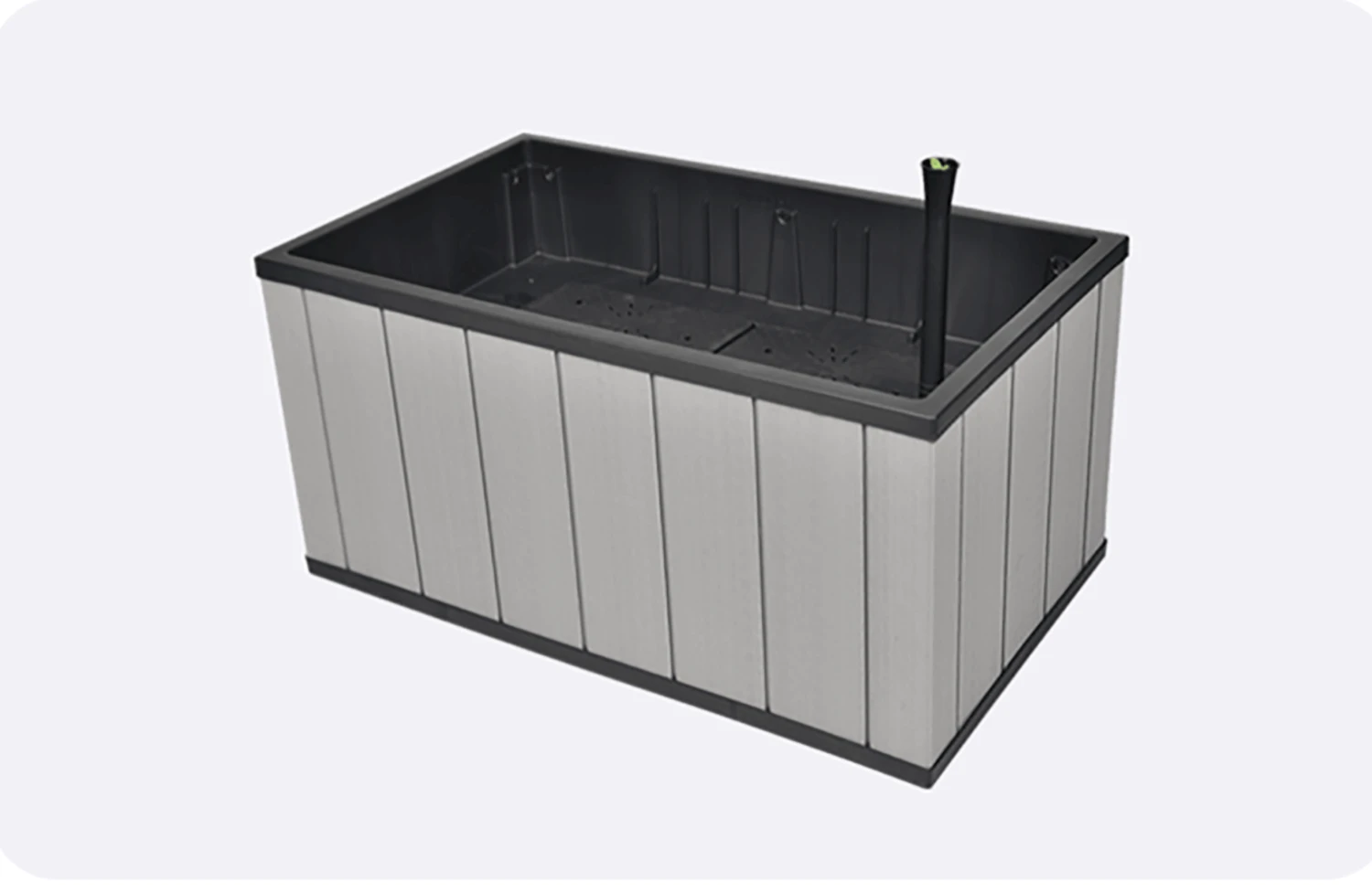 Crafted from DuoTech zero-maintenance, weather-resistant and non-decaying material, this planter will withstand your gardening needs. With 6 strong wheels, it’s stable but easy to move. It features a smart watering system for optimum moisture levels.