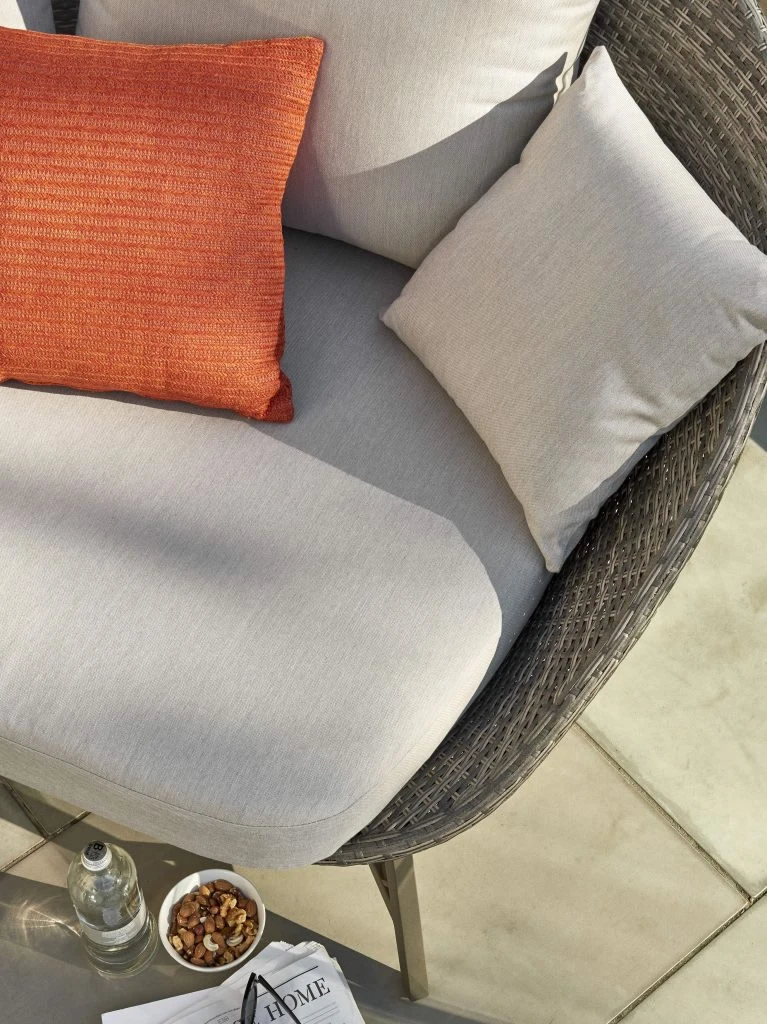 The weave and aluminium frame are weather and UV resistant so can be left outside all year round. The weave will look its best if cleaned at the start and end of the summer season. To clean it, use warm, soapy water and a brush or cloth only. Do not use any abrasive cleaning chemicals and it is highly advisable not to use a pressure washer as it may cause damage that will not be covered in your warranty. More corrosive substances, such as bird droppings and tree sap, should be cleaned off immediately.