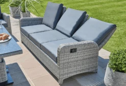 The LIFE Hawaii Lounge Sofa Garden Furniture Set is large, comfortable and brings the comfort of the living room into the back garden. It is highly customisable to suit your needs and features a reclining sofa and chairs, as well as a gas-adjustable coffee table.