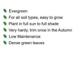 Laurels are evergreen, giving you year-round privacy and are great for reducing noise with large dense rich shiny green coloured leaves. If you don’t prune them before the flowers appear in early Spring, they form lovely delicate creamy white flowers and black berries in the Autumn.